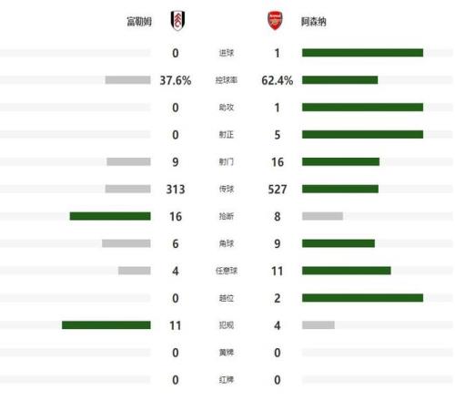 第36分钟约克雷斯接到队友直塞后,获得了直接起脚的机会,可惜小角度打门角度太正,被富勒姆门将轻松化解,1分钟之后,卡拉菲奥里的抽射稍稍高出横梁,半场比赛结束前,出现了有争议的一幕,乔希金被队友不慎击中面部倒地,随后裁判却叫停了阿森纳的进攻,这也引发了枪手球迷的不满。