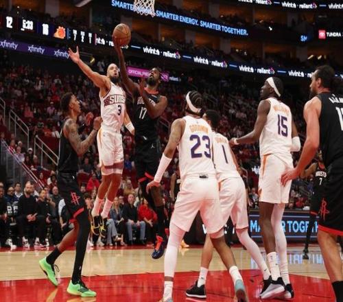 北京时间1月6日,NBA常规赛,火箭坐镇主场迎击太阳。本场比赛之前,火箭21胜11负排名西部第5,过去5场比赛他们4胜1负,状态还不错。和上赛季相比,火箭本赛季的战绩并没有明显提升,但毫无疑问的是,他们的上限绝对是比上赛季更高的,更有机会去冲击总冠军了,杜兰特到来之后,火箭的关键球能力肯定更强一些,季后赛也会打得更有条理,更加强硬。另一边的太阳队,本场比赛之前,21胜14负排名西部第7,没想到太阳这个赛季依然具备季后赛实力,送走杜兰特和比尔后,太阳靠布克+狄龙打出这个战绩,已经很不容易了。