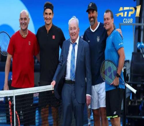 表演赛的喧嚣渐渐散去,灯光也暗了下来。费德勒与一众老友坐在一起,大屏幕配合播放着那些画质有些陌生的早期比赛影像,有些感受费德勒还记得,也有些细节他已经记不清了。