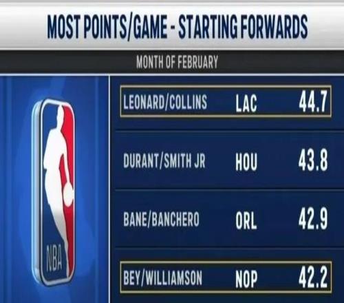 快船拥有整个二月得分最强的锋线组